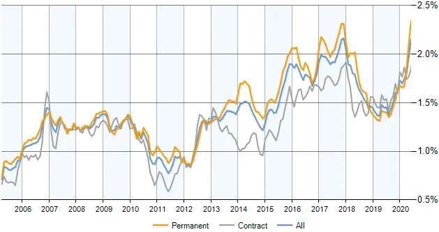 Рис. 101. Временные вариации числа вакансий для сетевых инженеров